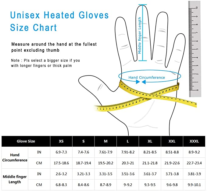 The gloves fit very well. This pair of gloves warm up pretty fast and keeps my hands warm. I wore these trick or treating with my kids and and they kept my hands warm throughout the 3 hours we were outside. The gloves are made of good material and there are a few heat options to chose from. The glove heats from the back of the hand to the fingertips. The battery lasts for a pretty long time. I was out for 3 hours with the gloves on medium heat and it lasted the whole time I was outside. Definitely a great pair of gloves.